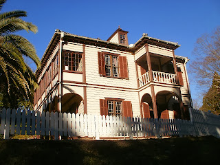 ロバート・エンバーソンはカナダからキリスト教伝道のために日本に派遣された人で、この住宅は1904年に静岡市葵区西草深に建てられた彼の自宅です。その後、エンバーソンが帰国した後も宣教師や牧師の住居としての役割を果たすことになりました。建築から80年を経過したころ、老朽化を理由に解体の話が持ち上がりましたが、建物そのものが市へ寄贈され現在の場所(静岡市駿河区池田2864-52)に移築され、歴史的建造物として保存されることになりました。明治時代の洋館によく見られる下見板張りが良い雰囲気を醸し出していると同時に、写真ではわかりにくいですが屋根は瓦で、これも「和洋折衷」の一つの形だと言えるでしょう。